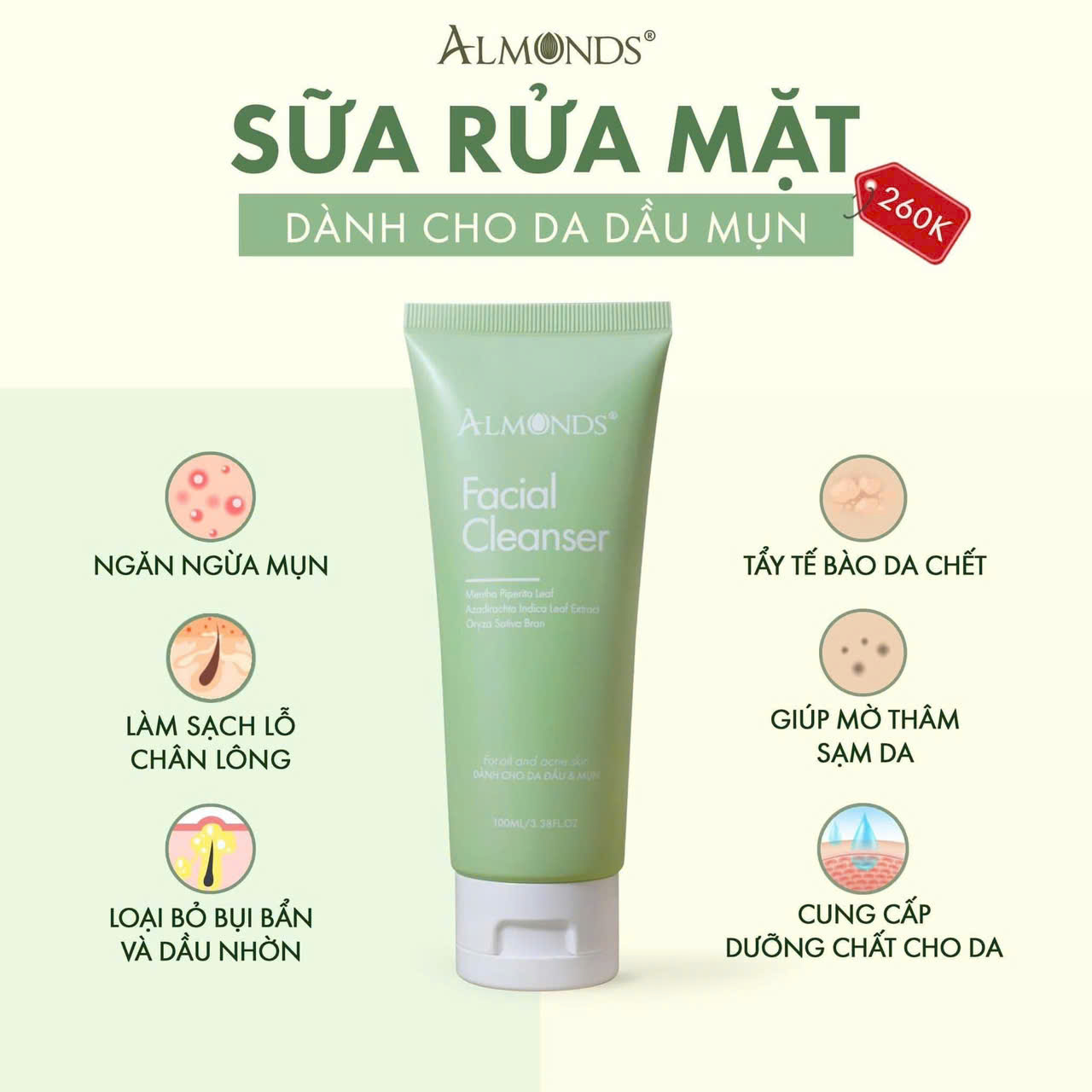 Sữa Rửa Mặt Almonds Facial Cleanser Cho Da Dầu Mụn 100ml